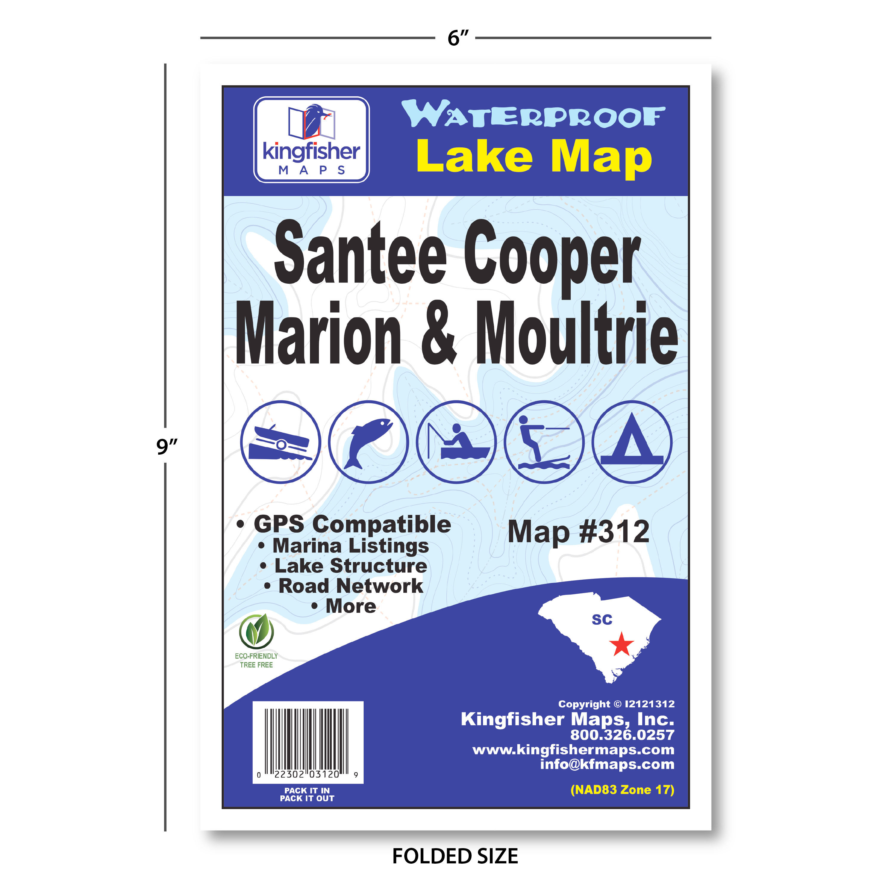 Kingfisher Maps Waterproof Topographical Lake Map Marion Moultrie South Carolina Walmart Com
